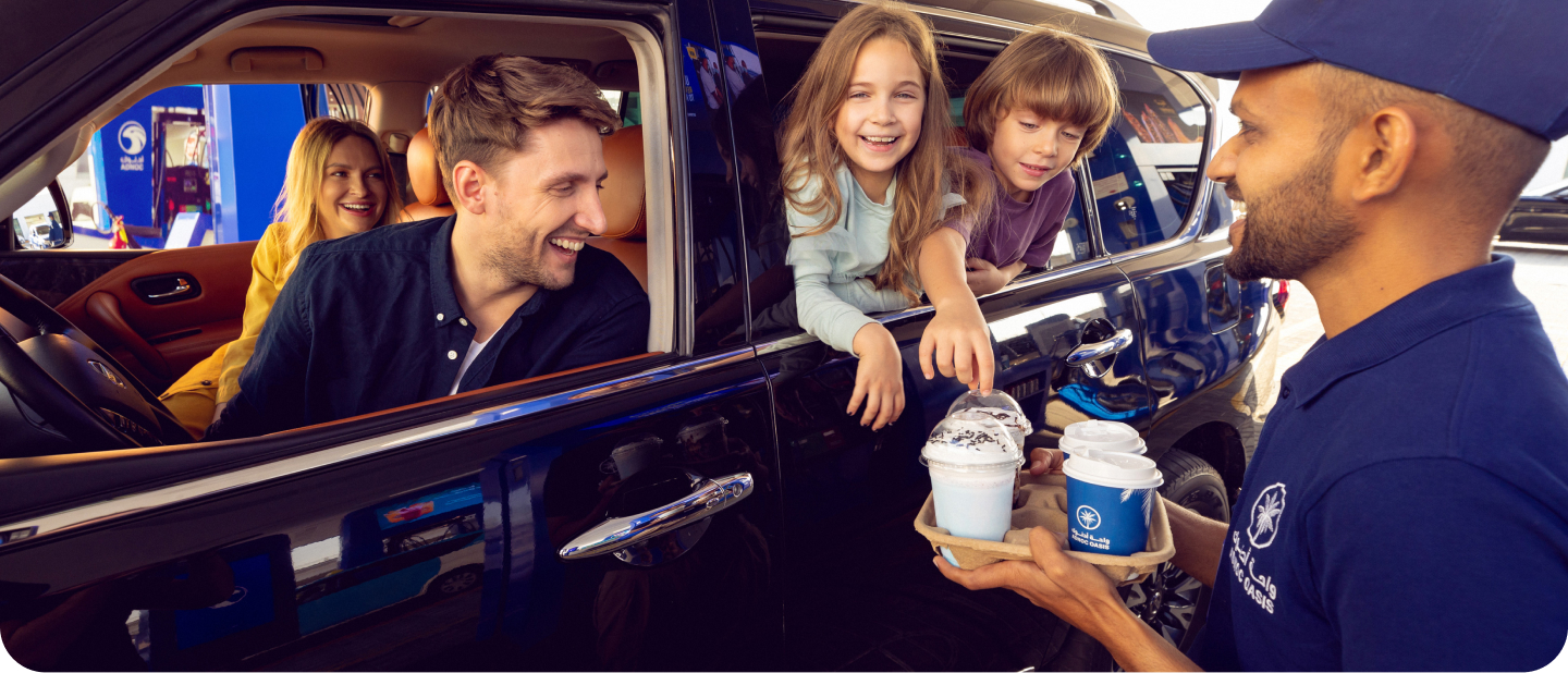 Our ADNOC Oasis offers ordering from your car while you are fueling via the ADNOC Distribution app. You can grab food, drinks and essentials from the comfort of your vehicle, saving you time and getting you back on the road for your onward journey.